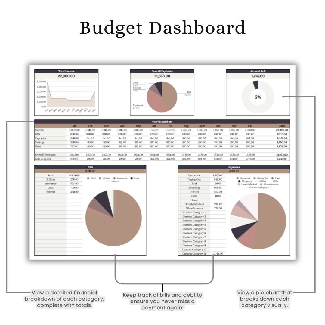 Stay organized in a way that feels personal and effortless with beautifully designed budgeting templates available in multiple color themes. Choose the style that fits your vibe and enjoy a clean, simple layout to plan your month, track expenses, and see exactly where your money goes. With a dashboard that’s easy on the eyes and fully customizable, managing your finances becomes clearer, calmer, and more enjoyable.